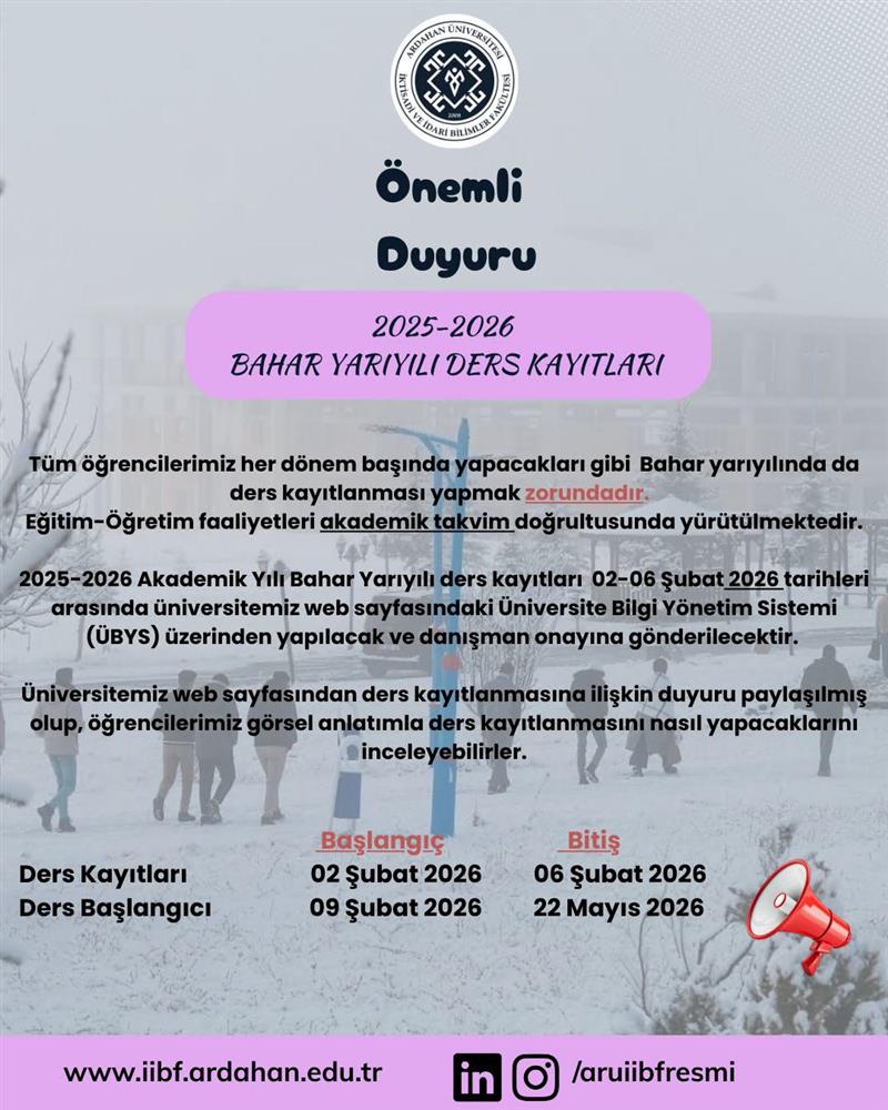 2025-2026 Akademik Yılı Güz Yarıyılı Bütünleme Sınavı Programları