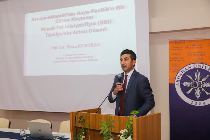 Prof. Dr. İhsan Kurtbaş, Çin öncülüğünde hayata geçirilen devasa altyapı ve ticaret inisiyatifi olan Bir Kuşak Bir Yol (Belt and Road Initiative - BRI) projesinin küresel ekonomik dinamiklere etkilerini detaylı bir şekilde ele aldı. Özellikle Türkiye’nin coğrafi konumu, limanları ve lojistik ağlarıyla projedeki stratejik rolünü vurgulayan sunumunda, “Türkiye, Asya-Avrupa köprüsü olarak BRI’nin vazgeçilmez bir parçası. Bu proje, ülkemizin ekonomik büyüme fırsatlarını artırırken, aynı zamanda bölgesel istikrarı güçlendirecek bir potansiyel taşıyor” ifadelerini kullandı.
