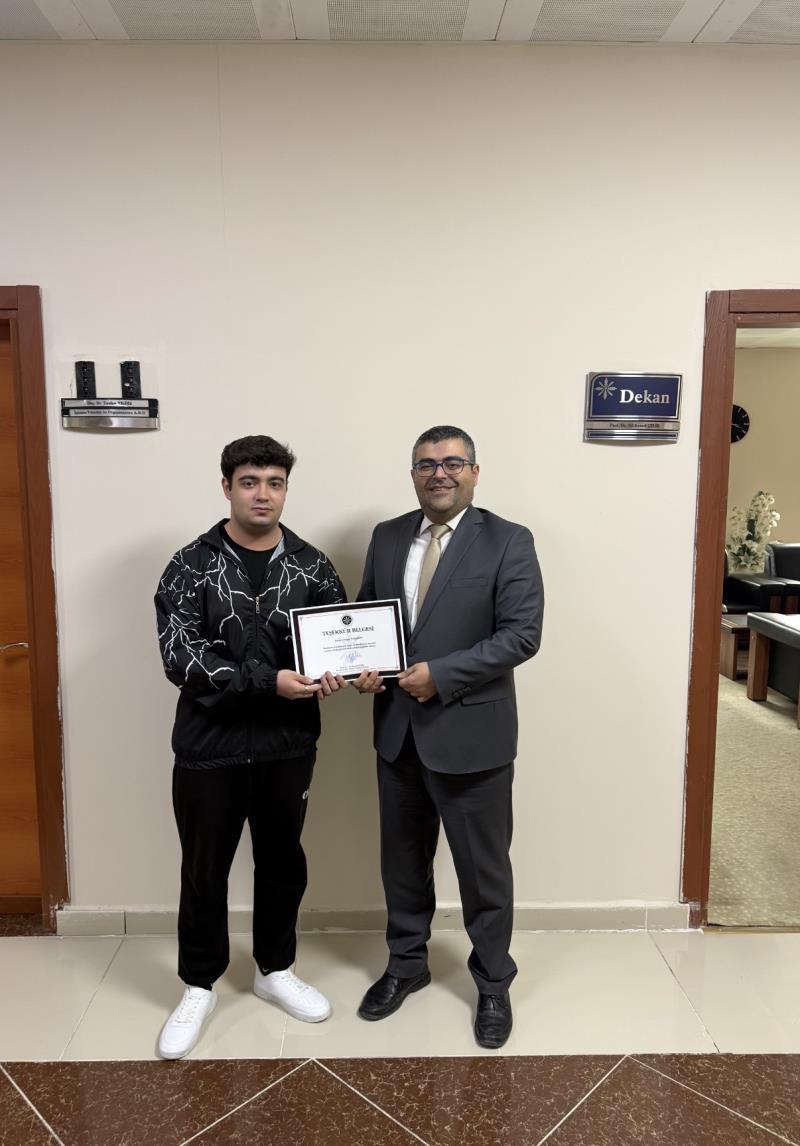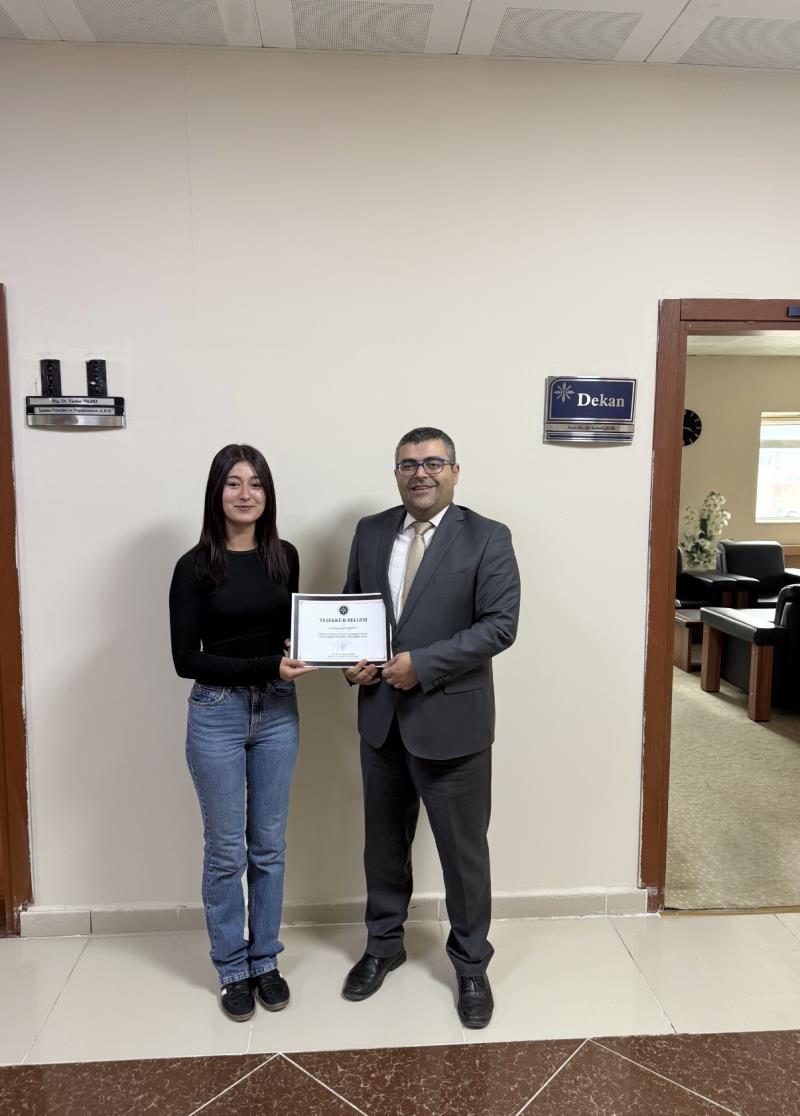 Dekanımız Prof. Dr. Ali Kemal Çelik, bölümlerimizin kalite ve akreditasyon sürecine sundukları katkılar ve geri bildirimler için Kalite Elçisi öğrencilerimize teşekkür belgesi takdim etti.